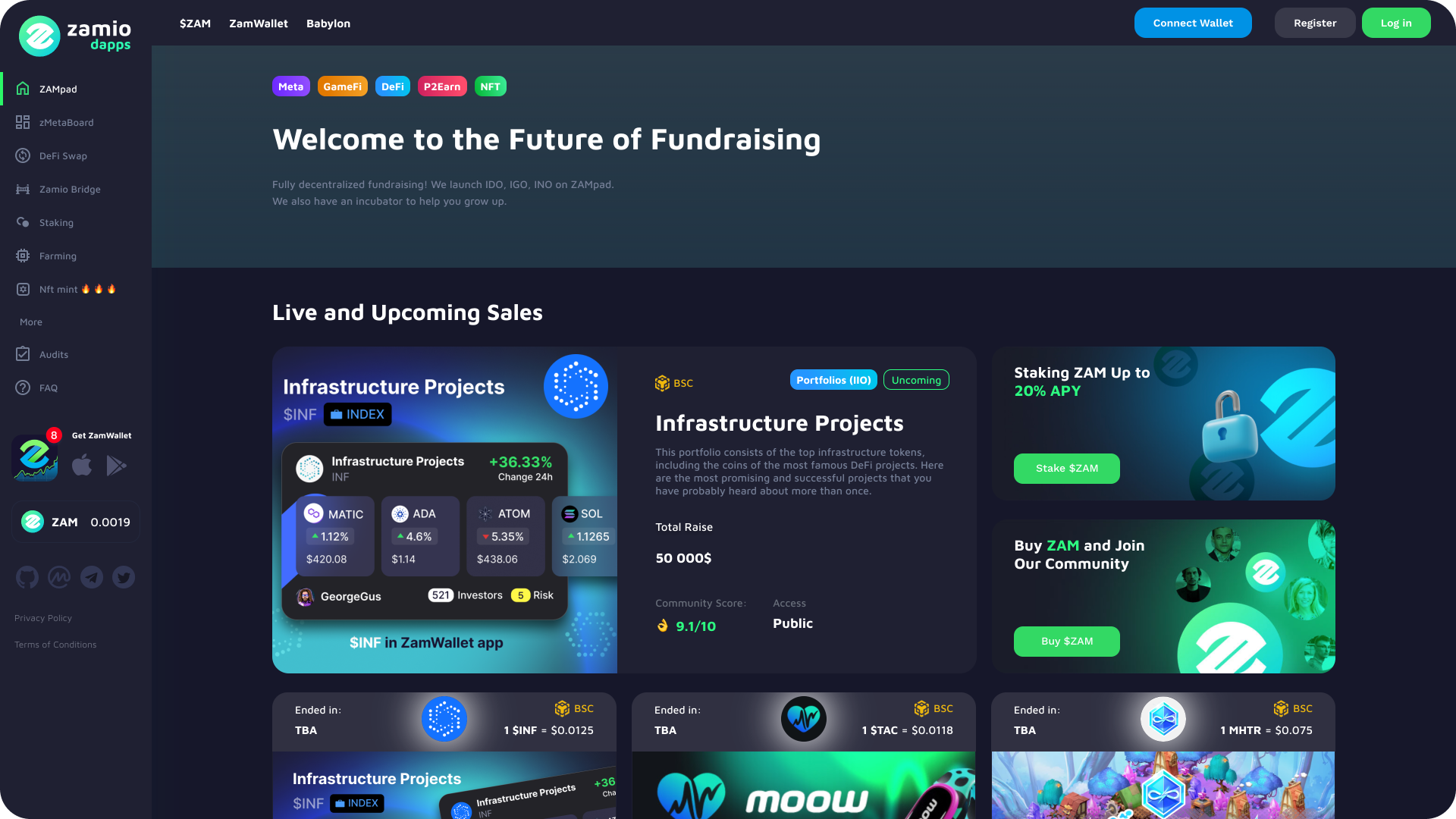 ZAMpad is a crowdfunding platform that helps early-stage crypto projects raise funds from the public.